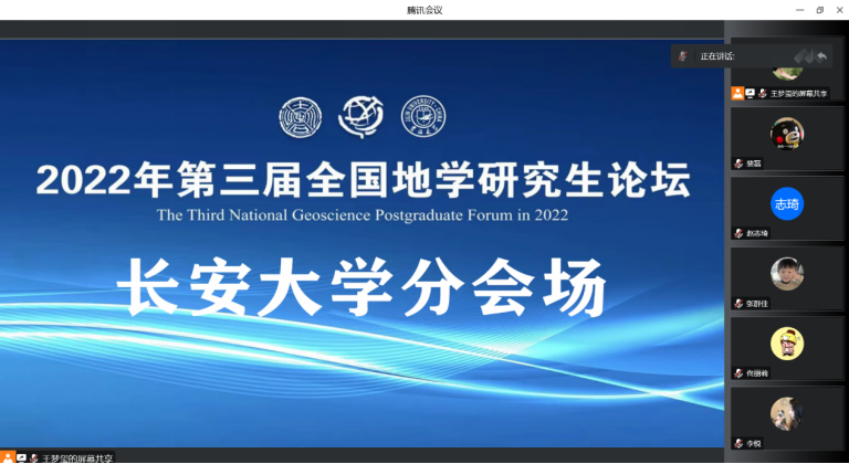 分会场。分会场秉承论坛“学科交叉融合,地学创新发展”的主题,着力打造地学青年学术交流的品牌,积极促进地学相关学科交叉融合。本次学术交流会因疫情影响以线上方式举行,共设5个专题,征集口头报告23个。 会议开始,院长李荣西教授亲切致辞,表示在疫情对正常教学和科研活动的影响下能够举办这样一次研究生学术交流会实属不易,对我校研究生的培养具有积极意义,并对即将进行学术报告的同学们进行了鼓励。随后,参加会议的研究生展示了各自的学术成果和最新进展,并与参会老师和同学进行了充分的交流,全方位展现了我校地学研究生的风采。李荣西院长在总结性发言中充分肯定了各位研究生的学术水平,并鼓励各位同学继续努力,做出更好的成果。会议最后,林浩等8位同学的报告被参会评委推选为优秀报告。