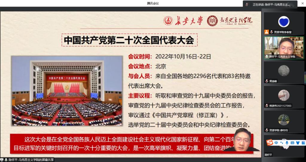 党委召开理论学习中心组(扩大)会议,邀请我校二十大精神宣讲团成员、马克思主义学院院长陈怀平教授,通过腾讯会议在线方式为学院师生党员开展党的二十大精神专题辅导报告。参加会议的有院党委理论学习中心组全体成员、党支部书记及师生党员130余人。会议由学院党委书记黄喜峰主持。