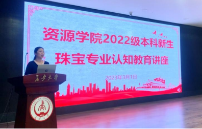 于2023年3月1日19:00在北校区长安文化艺术中心三楼多功能厅召开珠宝专业认知教育讲座,讲座由珠宝矿加系副主任谢星主持,珠宝矿加系刘云华教授,国家珠宝玉石质量检测中心陕西实验室张扬帆主任,陕西省产品质量监督检验院珠宝玉石贵金属所年悦老师以及珠宝教学研究所所长汪帮耀老师受邀参加了此次讲座。