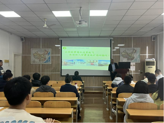 校友的身份给同学们分享了自己在四勘院的成长经历,补充介绍了单位具有地质队伍能力强、科研平台好、传帮带合作氛围好等优势。