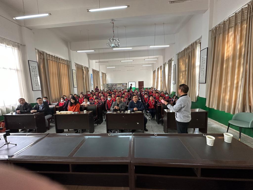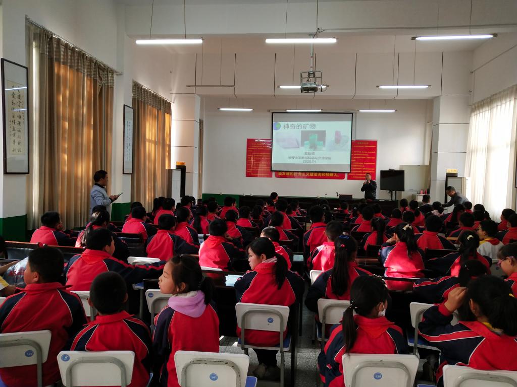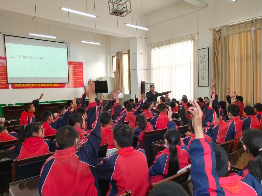 4月25日上午,经四个多小时车程,一行7人到达商南县十里坪镇九年制学校。在校长赵运山引导下,实地查看了学校基本校舍、图书室和地学科普讲座场地等。下午,肖良副教授和夏昭德副教授联合,给商南县十里坪镇九年制学校四年级、五年级和六年级三个班90多名同学,作了题为《化石会“说话”》《神奇的矿石》地学科普讲座。深入浅出地讲解化石背后的故事,一个个问题引领一个个有趣画面展开,使同学们了解了地球生命演化的过程,领悟了生命的奥妙;“神奇的矿物”不仅让同学们欣赏到了各式各类色彩斑斓的矿物,还讲解了这些矿物在国民经济建设和发展中的各类用途以及保护环境的重要性,开阔了同学们眼界并从小树立起“绿水青山就是金山银山”理念。讲座上,黄色网站