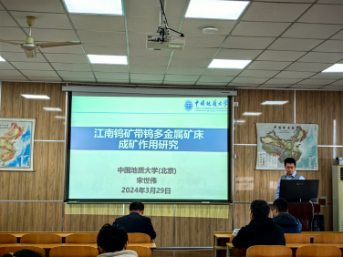 最后,宋老师针对参会师生提出的一系列问题进行了细致解答,场内学术氛围浓厚,每一位师生收获颇丰。这场精彩的报告使参会师生对江南钨矿带钨多金属矿床的成矿作用有了更深入的认识,同时也为参会师生提供了学术交流和思考的机会。本次报告在参会师生热烈的掌声中圆满结束。