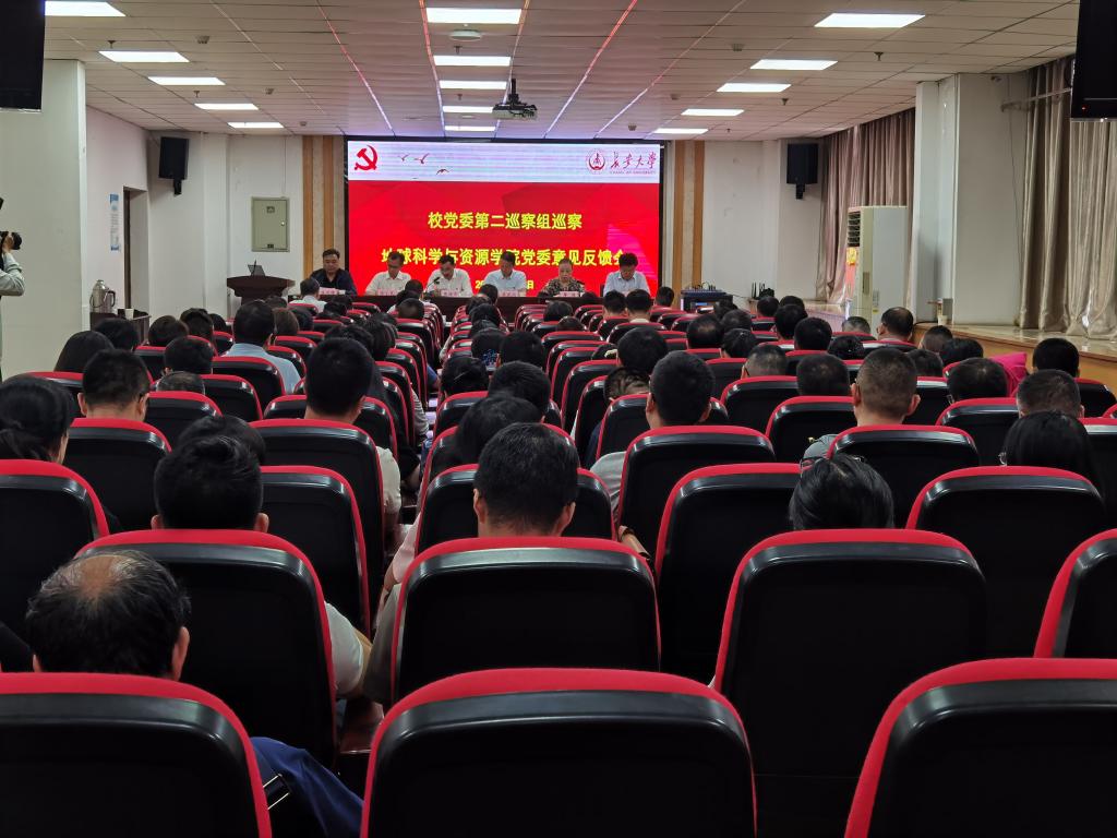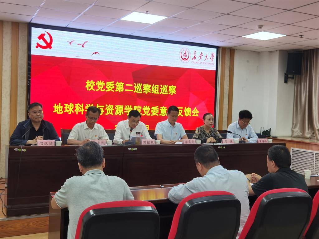 反馈大会会前第二巡察组在地学科技大厦309会议室向学院领导班子进行了专题反馈。陶继东提出整改要求,廖谦通报巡察情况,黄喜峰、温汉捷分别作简短表态发言,并现场签收《反馈意见签收单》。