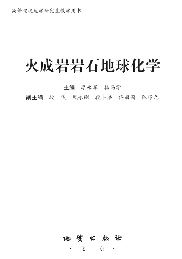 此次出版的《火成岩岩石地球化学》是李永军教授团队在10多年研究生岩石地球化学课程内容不断更新与素材积累的基础上完成的,并经过反反复复的教学实践检验,符合火成岩岩石地球化学的教学规律和要求。教材聚焦火成岩岩石地球化学学科前沿,汇集岩石地球化学最新研究成果,强调基础理论的原理与研究思维。同时学习和借鉴国内外地球化学相关内容,重视内容的系统性和教学的适应性。另外,重视理论联系实际,方法与实例相结合,将编(著)者们近年发表的岩石地球化学典型成果作为实例引入教材,从而在教学中实现理论与实践相结合,这是本教材的突出特色。
