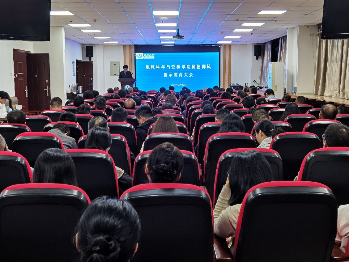 在南校区东院地学科技大厦313会议室召开学院师德师风警示教育大会,学院全体教职工参加了会议。
