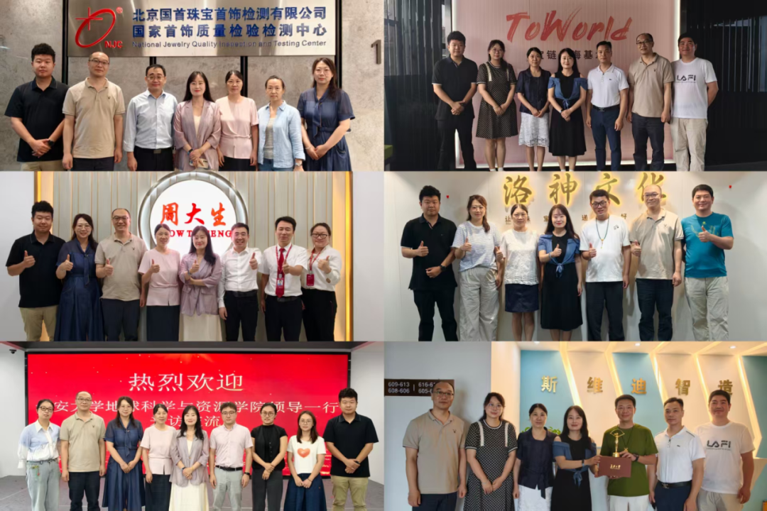 党委副书记许晨、珠宝矿加系副主任谢星、学生工作办公室主任黎皛、辅导员樊惠彬赴广东省深圳市、广州市开展访企拓岗与行业调研专项工作,先后前往深圳市中坦·比邻珠宝有限公司、北京国首饰珠宝检测有限公司国家首饰质量检验检测中心、周大生珠宝股份有限公司、珠宝国检集团培训中心(国检教育·深圳)、宝创会传媒有限公司、番禺抖音基地珠宝QIC检测中心、斯维迪智造(广州)珠宝科技有限公司、广州市番禺区珠宝设计与工艺师协会、嘉一珠宝有限公司开展交流座谈。双方围绕珠宝行业人才培养模式创新、毕业生实习实践基地建设、产学研项目对接及学术交流机制搭建等方面深入探讨交流。