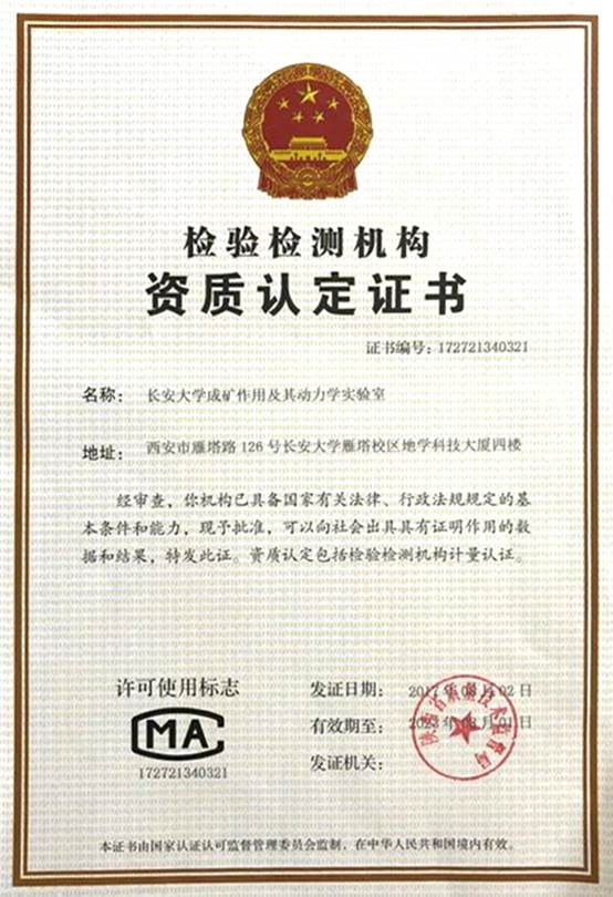 实验室检验检测机构资质认定证书