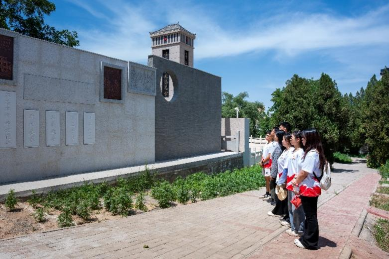默哀仪式后,大家一同参观了民和县红色教育基地,实践队员共同学习了当地党群文化:民和县作为双拥模范县,拥有深厚的军民双拥历史,双树村作为青海省第一个农村党支部的诞生地,见证了革命早期党组织在当地的发展与壮大,展现了党与人民群众紧密相连的鱼水深情。陵园内的史料,也详细记录了民和地区的抗震救灾事迹:从早年投身革命的热血青年,到在艰苦斗争中坚守信仰的仁人志士,他们用生命谱写了壮丽的篇章,让实践队员们深刻体会到这片土地上不屈的精神和顽强的意志。