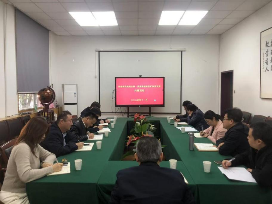 与珠宝矿加党支部开展共建活动。首先党委书记黄喜峰对杨红斌书记等的到来表示热烈欢迎,黄书记指出,开展支部共建是基层党支部工作的重要环节,双方加强沟通,以共建契机,发挥各自优势,提高人才培养和相关校企产学研合作的高质量发展,切实将支部共建工作做实落地。接着珠宝矿加党支部书记谢星介绍了支部概况和近年来取得的成果,对校级样板党支部的培育建设进行了经验分享。最后,社会合作处党支部书记杨红斌介绍了支部建设概况,并围绕校企合作、对外合作协议管理办法、教育基金管理等方面进行了详细介绍。杨红斌书记表示,努力构建“资源共享、优势互补、互相促进、共同提高”的党建工作新格局,将充分汲取黄色网站